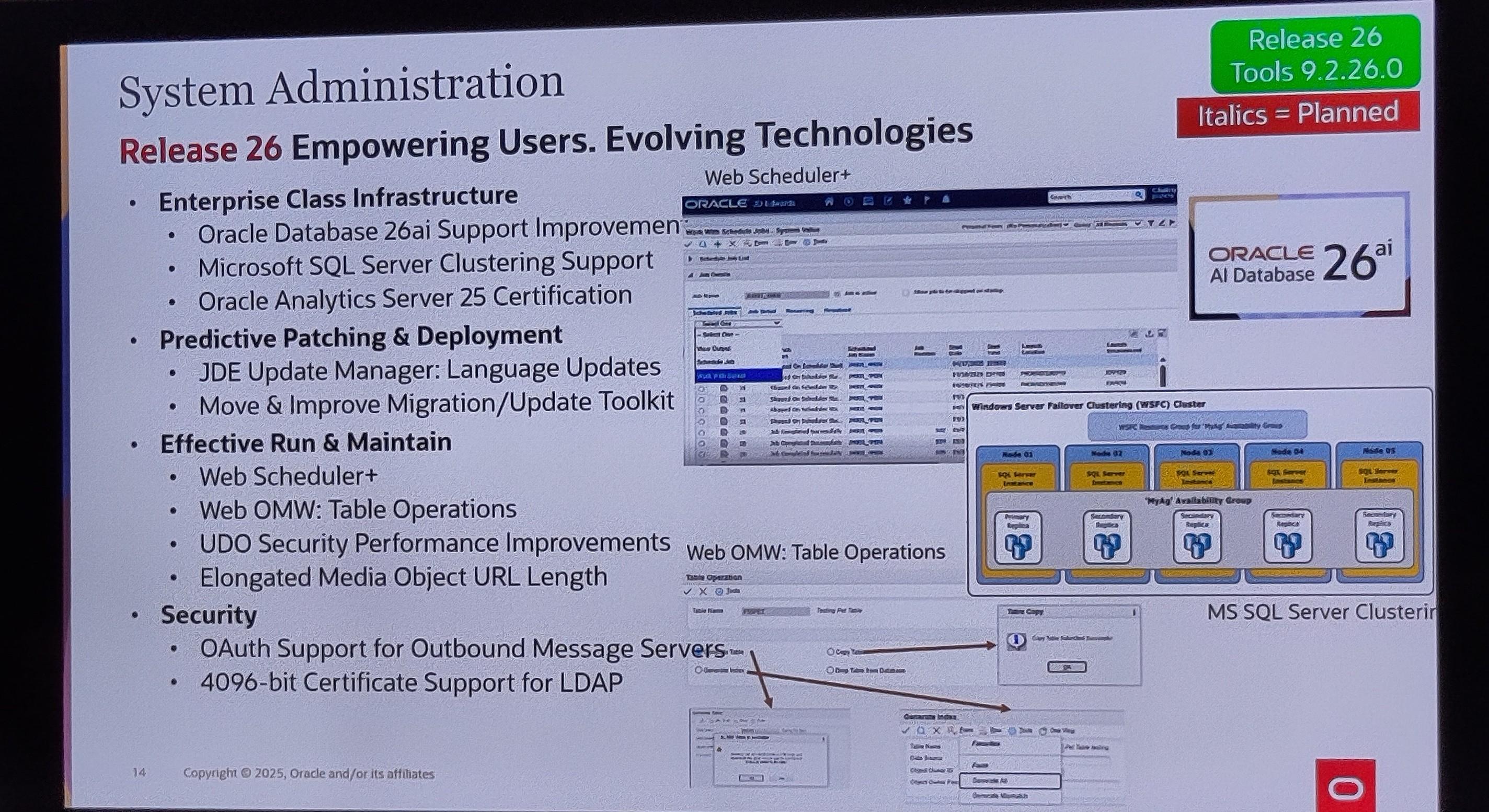 JD Edwards Release 26 delivers for the C-Suite and daily users alike. We were delighted to attend the Applications Unlimited tour and hear directly from Paul Houtkooper, Vice President of JD Edwards Product Development at Oracle, about the innovations already delivered and what is planned. A highlight of this release is that we see the JDE product team deliver on features that leverage the power of AI for real use cases.